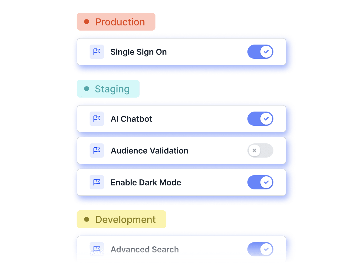Easily track and monitor the development lifecycle of your features using feature flag statuses.